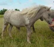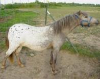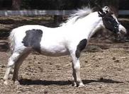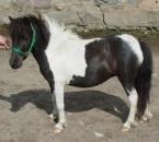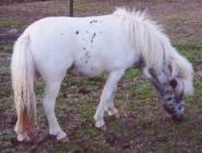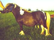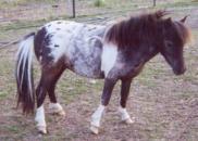 | PATTON'S BLACK KNIGHT (2002) AMHA / AMHR Grosshills Stepping Out x R & S Sunrise Mystic Dawn This colt is heavily Appaloosa bred, and 50% Falabella! Appaloosa on both sides of his pedigree, including his Sire and Dam. He should produce lots of color and might color out himself as he gets older. His Sire, Grosshills Steppin Out, is a loud, black, blanket Appaloosa, who is a son of Grosshills Comofin, an Appaloosa Falabella imported from Argentina. He is very sweet, and friendly, and should do very well in the showring. Straight legs, and perfect bite, should mature 32-33". |