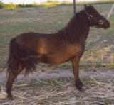 | SUTHERLIN LITTLE ROSEY O (1999) AMHA / AMHR 33" Reynolds Lighting x Indian Creeks Summer Breeze "Rosey's" Sire is Reynolds Lighting and her Dam is Indian Creeks Summer Breeze. Rosey has a very long neck, a pretty head and flashy color. Her pedigree is strong in driving horses and she has a lot of trot. She would make a very nice driving horse or Broodmare! |