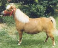 | KATELANDS LETTIE AMHA (1993) AMHA 29.5" Bond Little Big Shot x Mustardseed Ramundos Nikki "Lettie" is an absolutely dynamite bond bred, sorrel / silver bay mare. She has a bright flaxen mane and tail, Arabian head and a showy attitude. This mare has always produced something special and is a fabulous broodmare, often producing Pintos. |