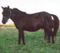 | WITS END LIL MUNCHKIN (1988) AMHA 30" Komokos Little Mac x Hobby Horses Black Satin "Munchkin" is a very classic mare. She has produced two incredible show winning colts, the famous Ima Buckeroo Two (National Top Ten and Regional Champion), and Alvadars Double Dare. This mare has been laid off as a broodmare, but is now back to work! Munchkin has been bred to Scott Creek Tattoo for a 2005 foal. |